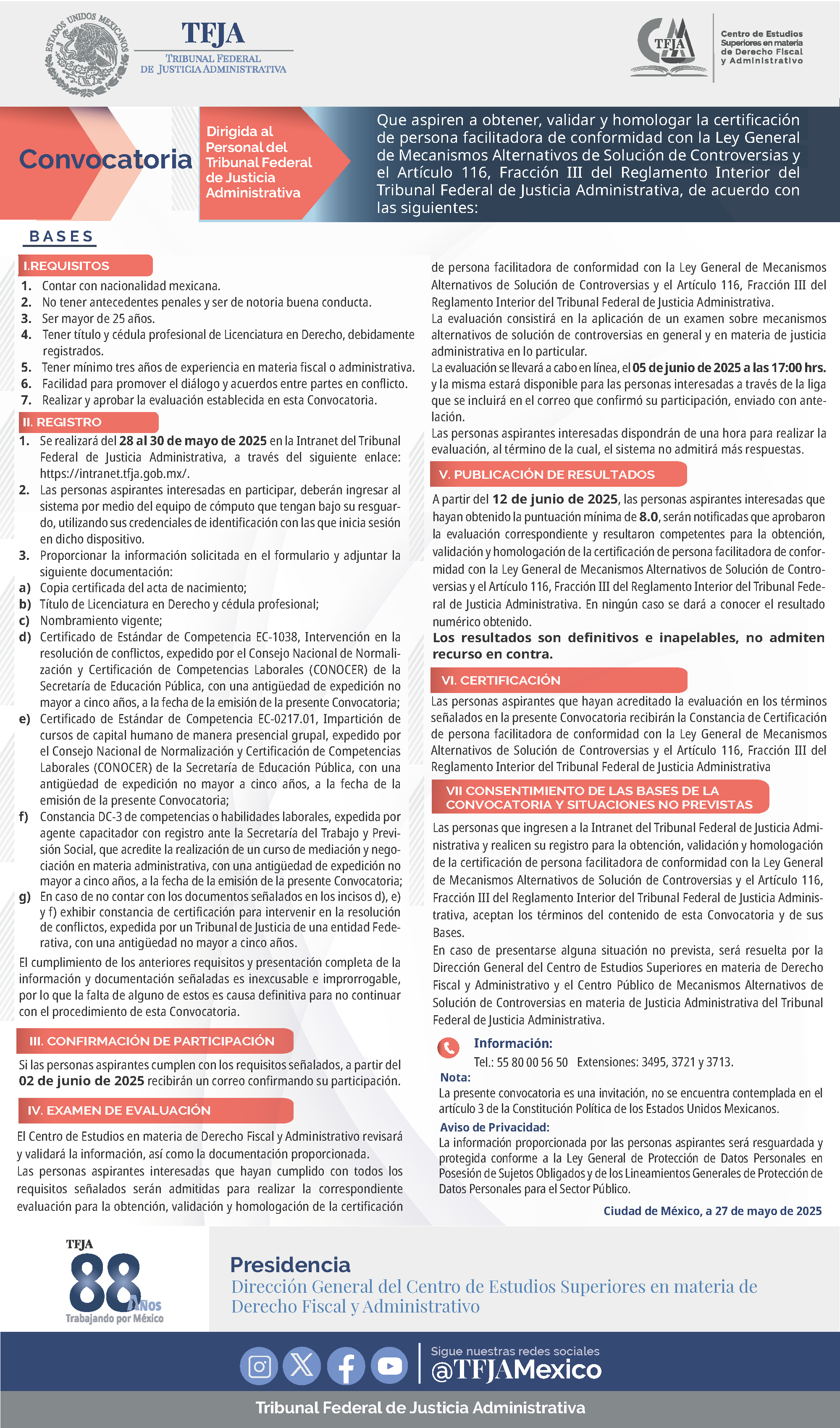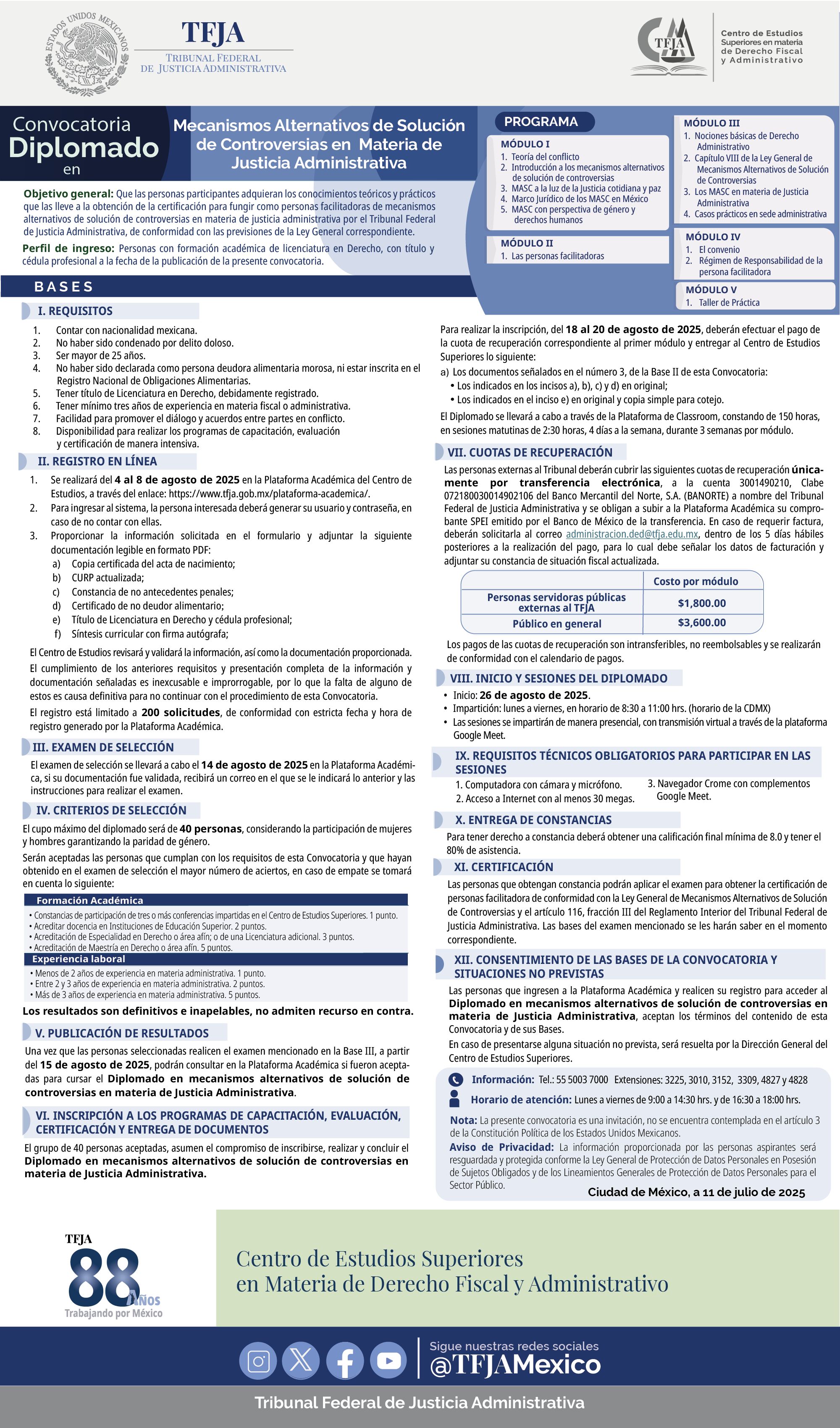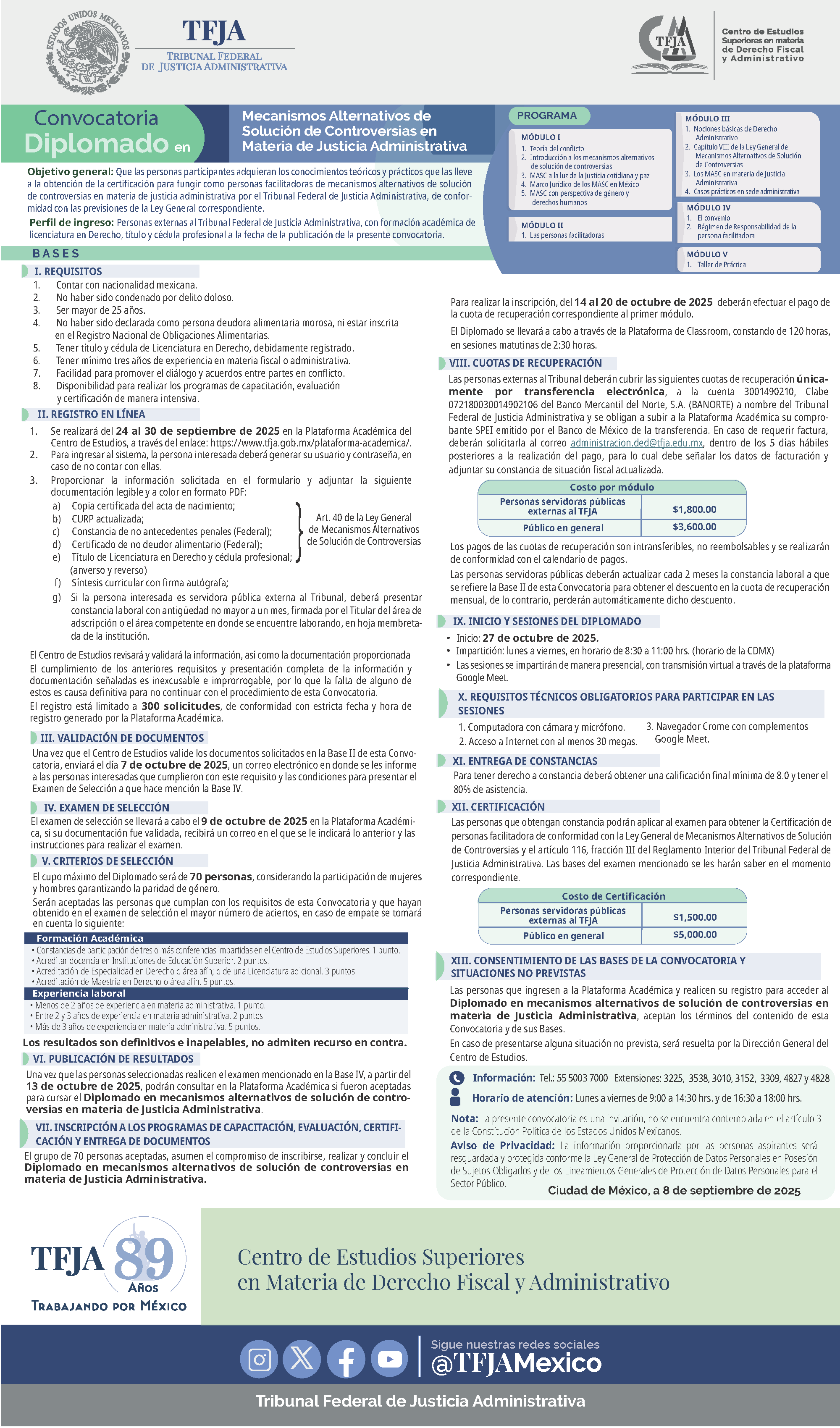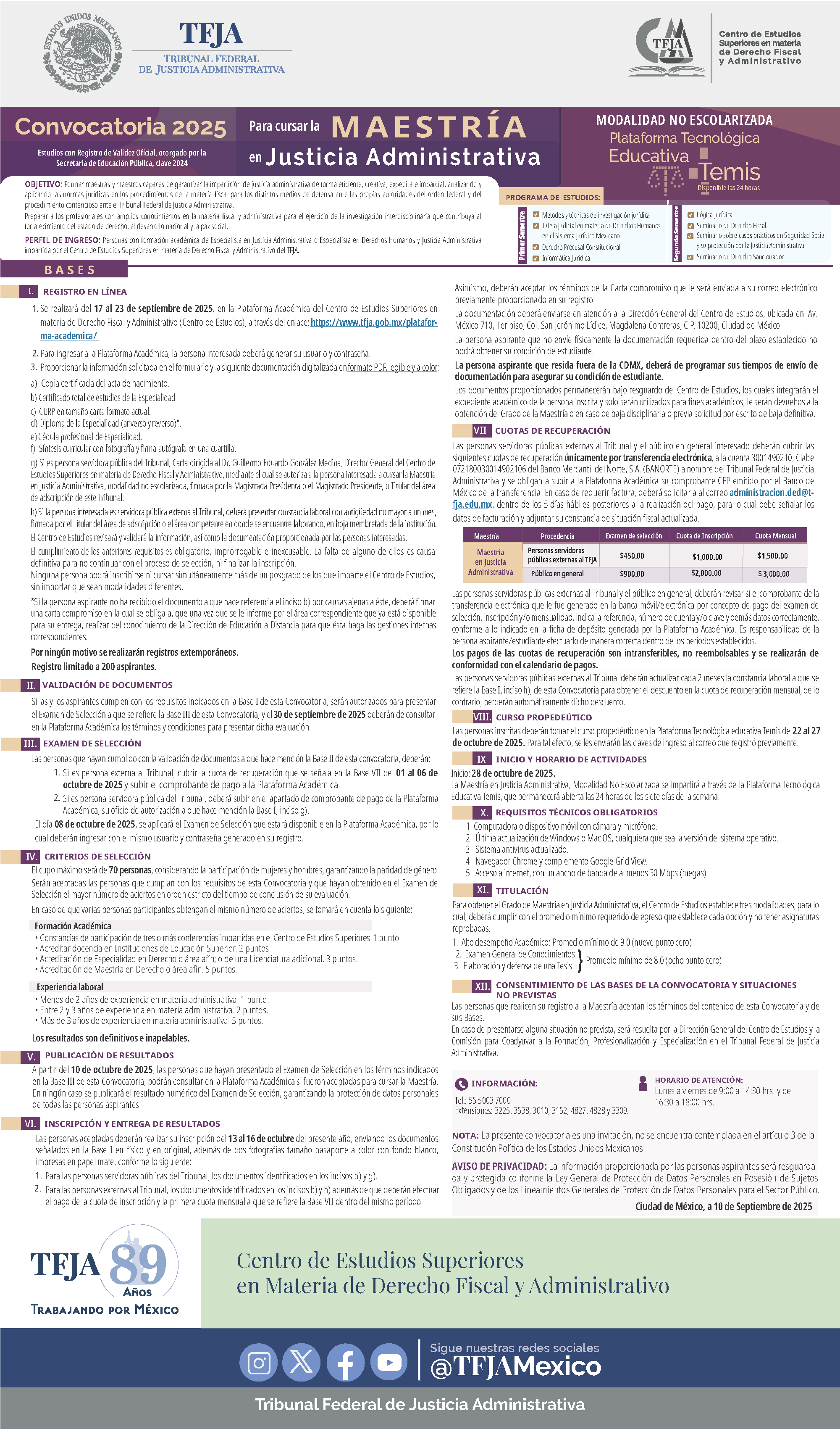 Desde aquel año y en forma ininterrumpida se impartió el curso señalado y, gracias a la aceptación e interés que ha mantenido hasta la fecha, no sólo de parte de las personas que laboran dentro del Tribunal, sino también de licenciadas y licenciados en derecho no pertenecientes al Tribunal, quienes tienen acceso a él, desde el año 2012 se convirtió en un programa de posgrado, cambiando su nombre a Especialidad en Justicia Administrativa, con validez oficial de estudios, clave 2011, con fundamento en el Convenio de Colaboración celebrado entre el Tribunal Federal de Justicia Administrativa y la Secretaría de Educación Pública, de 15 de diciembre de 2010.